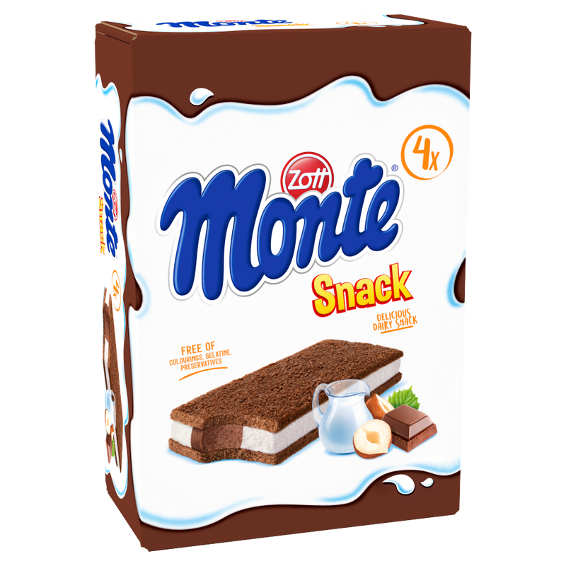Zott Monte Snack tejes, csokoládés-mogyorós krémmel töltött sütemény 4 x 29 g (116 g)