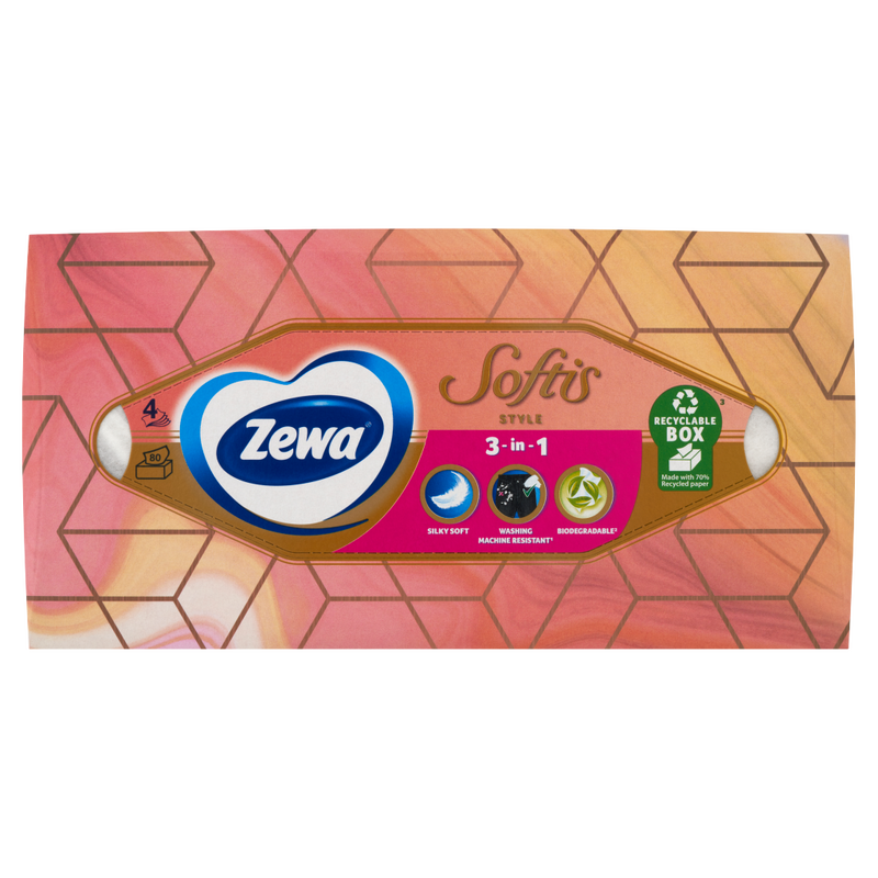 Zewa Softis Style illatmentes dobozos papír zsebkendő 4 rétegű 80 db