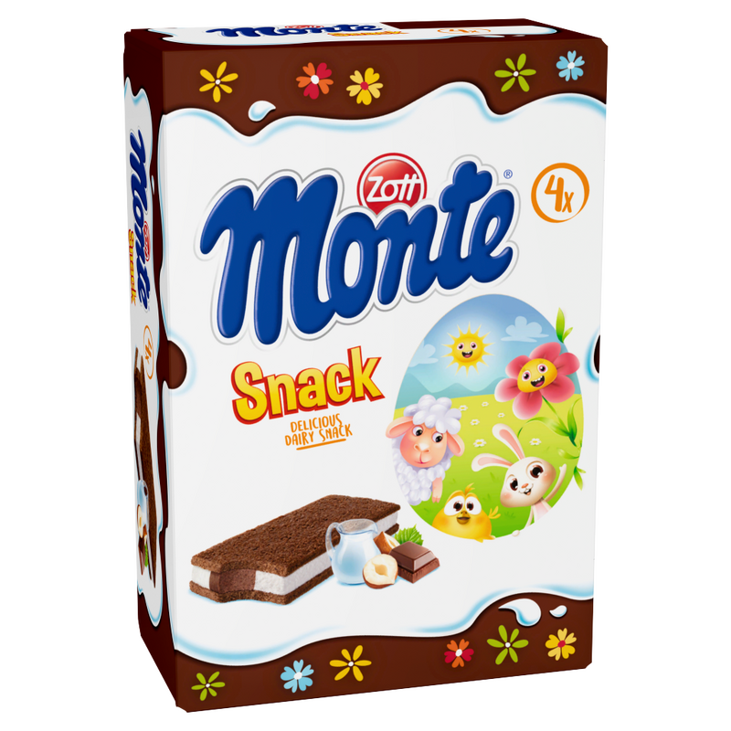 Zott Monte Snack tejes, csokoládés-mogyorós krémmel töltött sütemény 4 x 29 g (116 g)