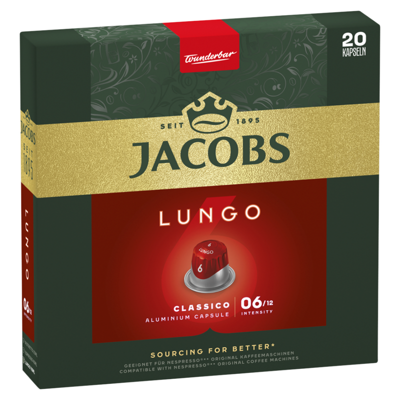 Jacobs Lungo Classico őrölt-pörkölt kávé kapszulában 20 db 104 g