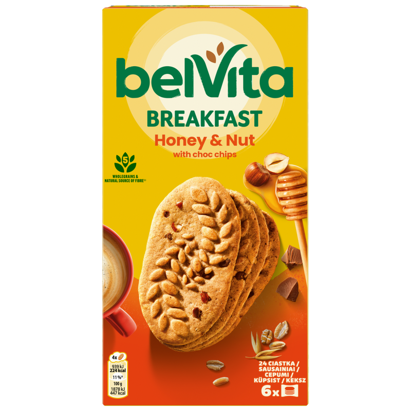 Belvita mogyorós és mézes, gabonás keksz csokoládédarabokkal 6 x 50 g (300 g)